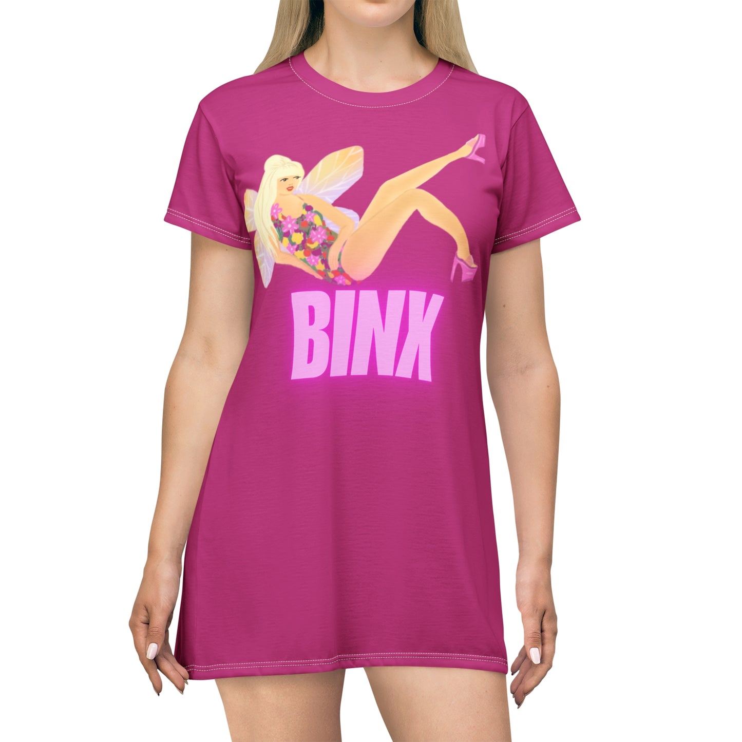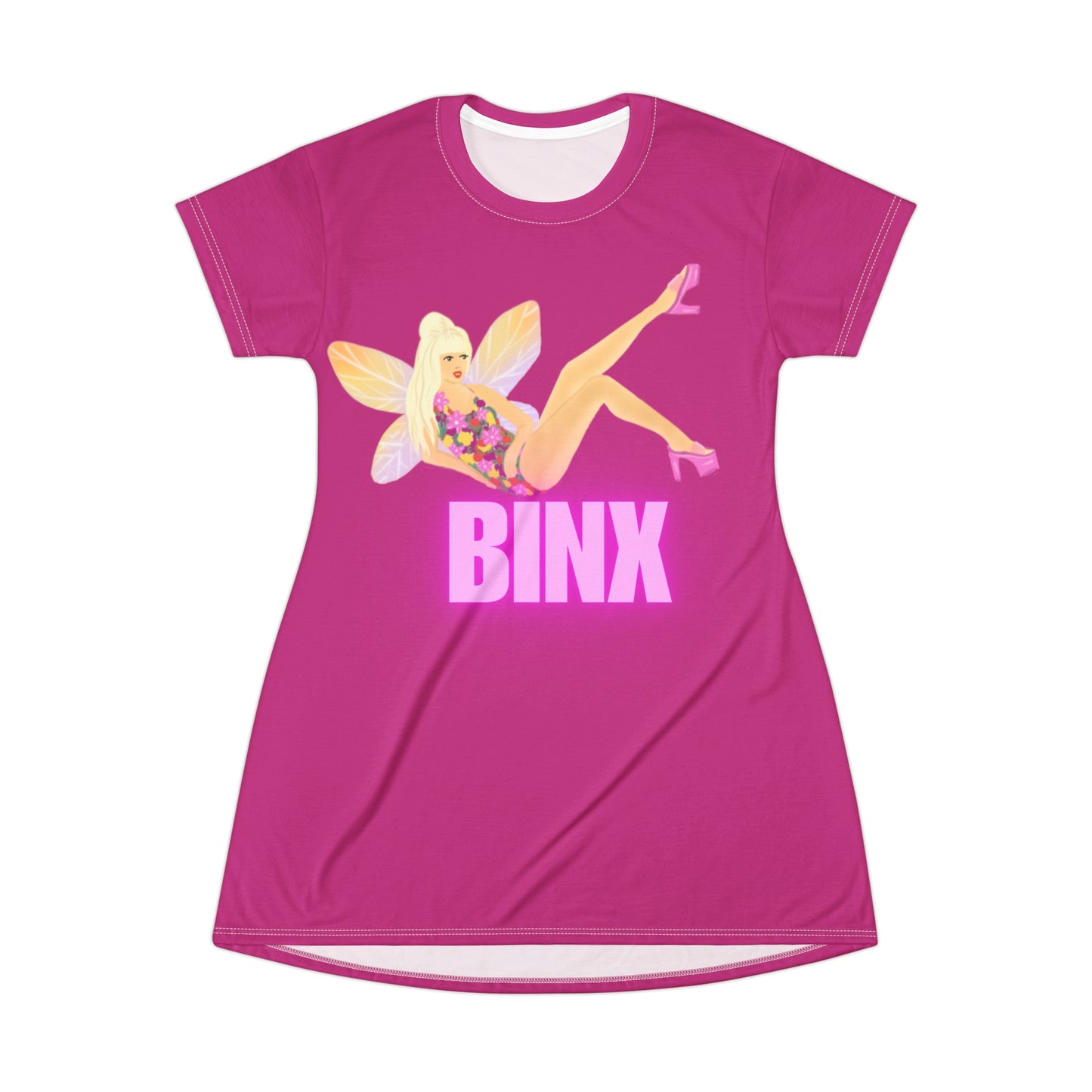 This All-Over-Print BINX T-Shirt Dress is tagless, custom cut and sewn to match every style.